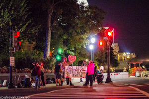 U.S. Capitol Police however were clearly uncomfortable with protestors hanging out on the corner so close to the Capitol building, playing loud music, dancing and displaying large anti-war banners.