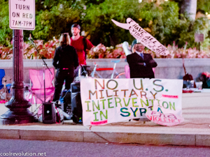 CODEPINK is calling the camp “Peace Insurrection,” a base for people to express their opposition to proposed military intervention in Syria. President Obama is pressing Congress for authorization to launch missiles into Syria after the al-Assad regime allegedly gassed civilians in the Damascus region with chemical weapons.