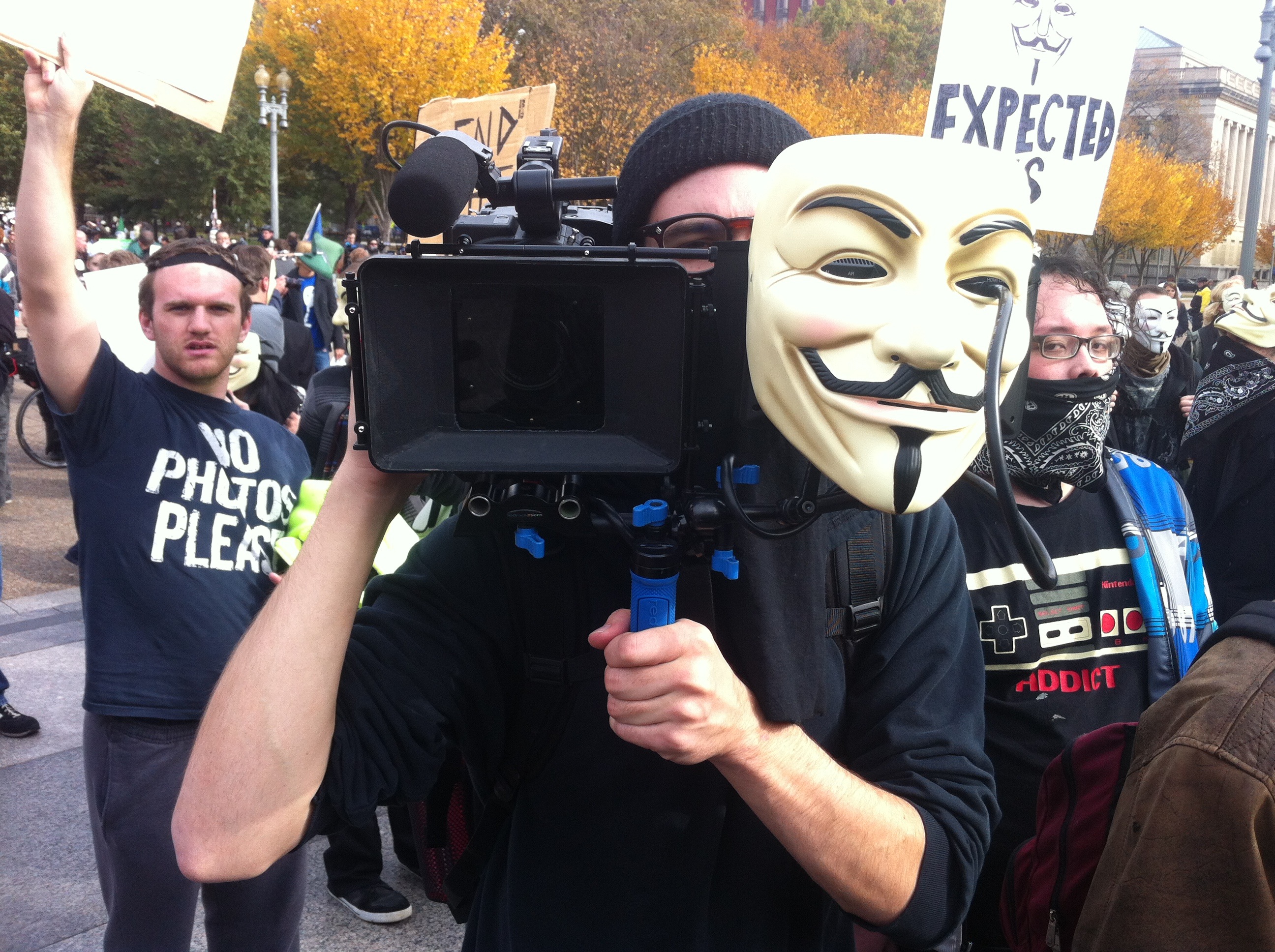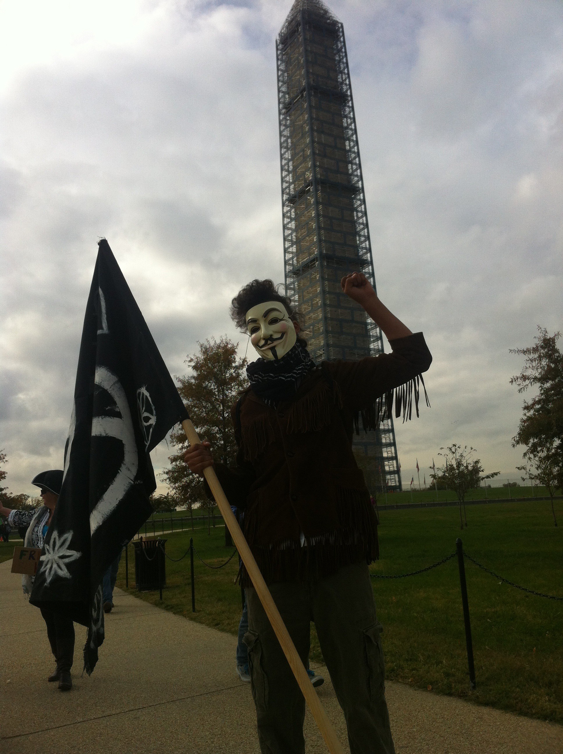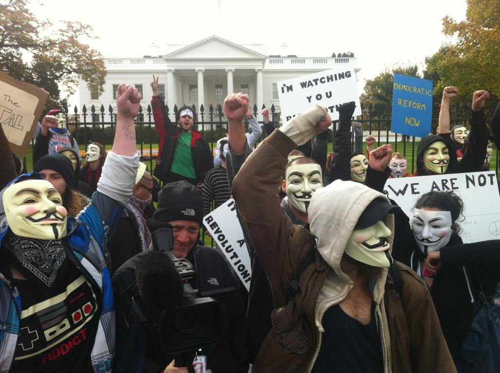 Steve, a march organizer from Virginia, says that Anonymous is a concept rather than a group. “We have come here [to Washington] armed with cameras and ideas.” He viewed the protest as an opportunity to dispel the notion that Anonymous was a terrorist organization, as it has sometimes been portrayed.