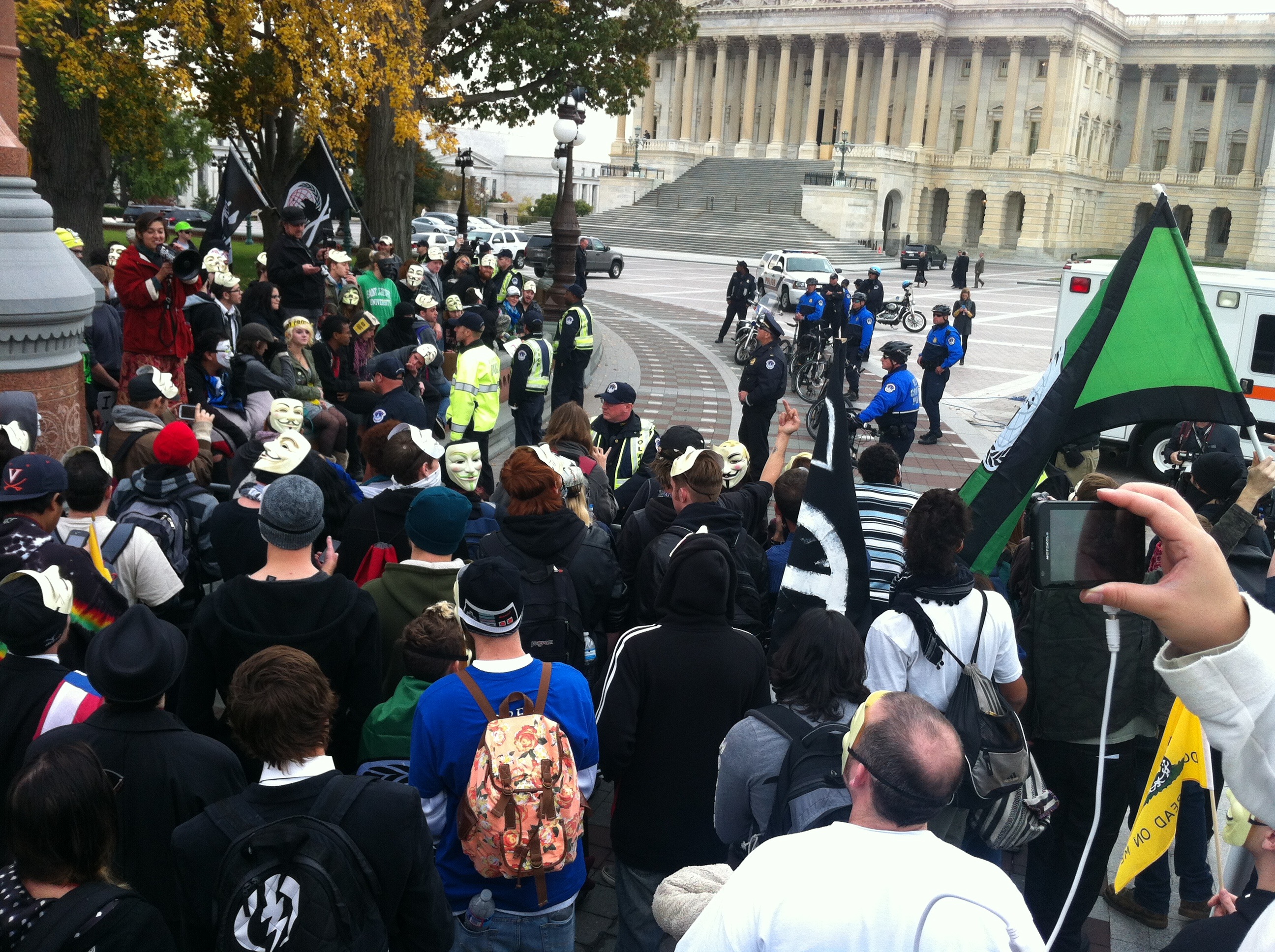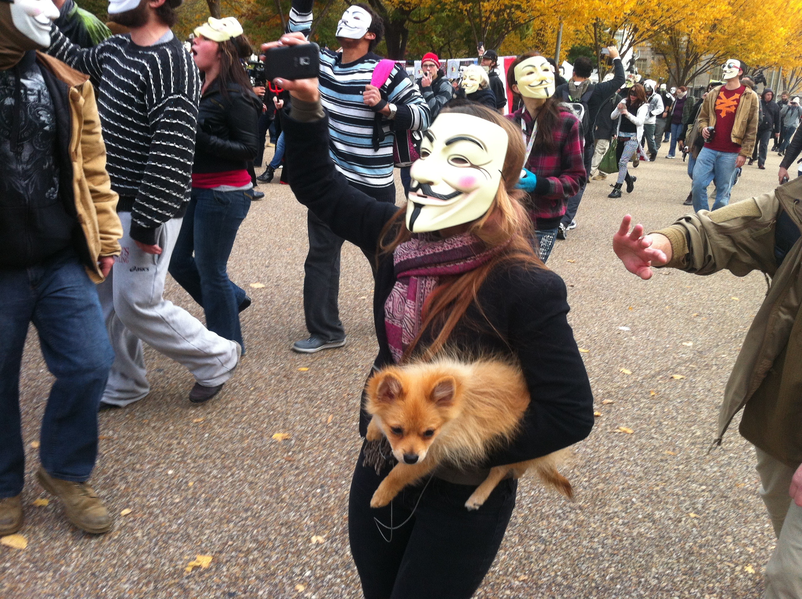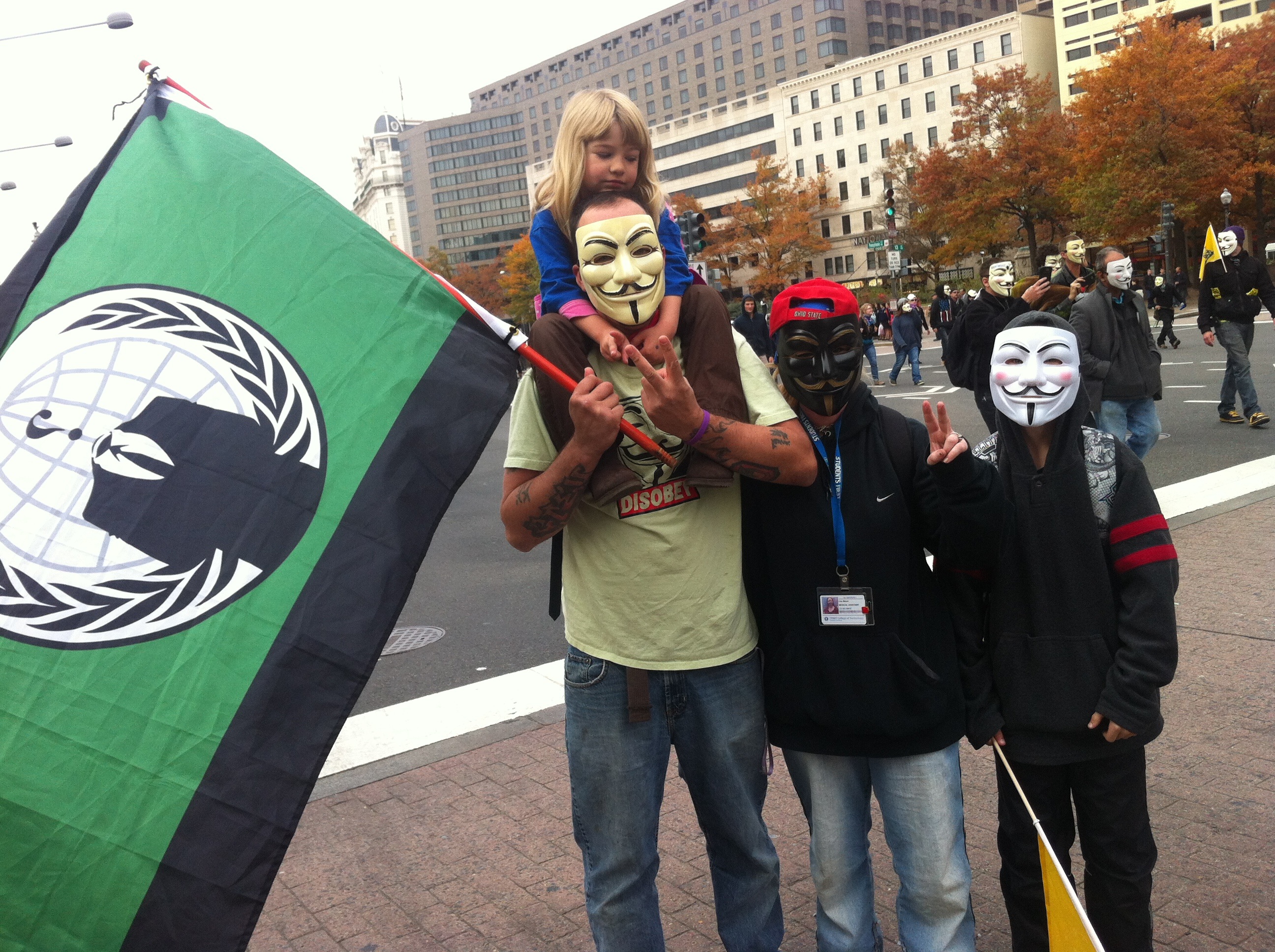 Steve, a march organizer from Virginia, says that Anonymous is a concept rather than a group. “We have come here [to Washington] armed with cameras and ideas.” He viewed the protest as an opportunity to dispel the notion that Anonymous was a terrorist organization, as it has sometimes been portrayed.