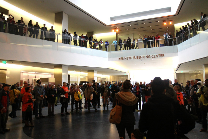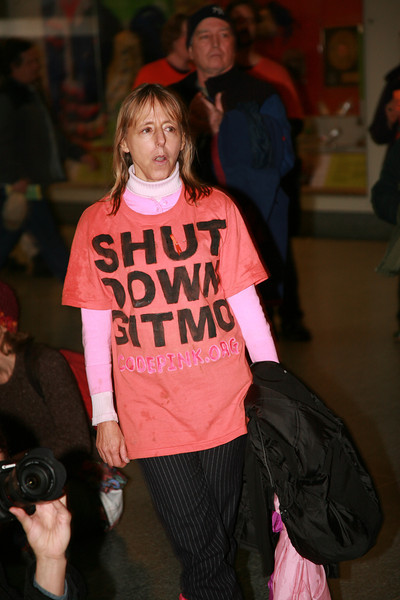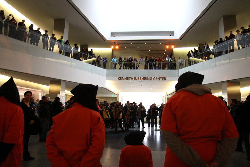“Stop torture now! Close GITMO now!” they chanted. They also sang, “We gonna build a nation that don’t torture no more, but it’s gonna take courage, that change to come.” Many museum visitors watched approvingly, while a few booed.