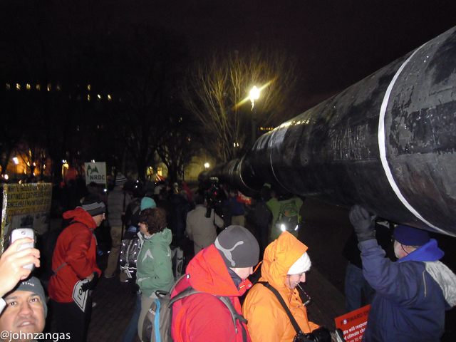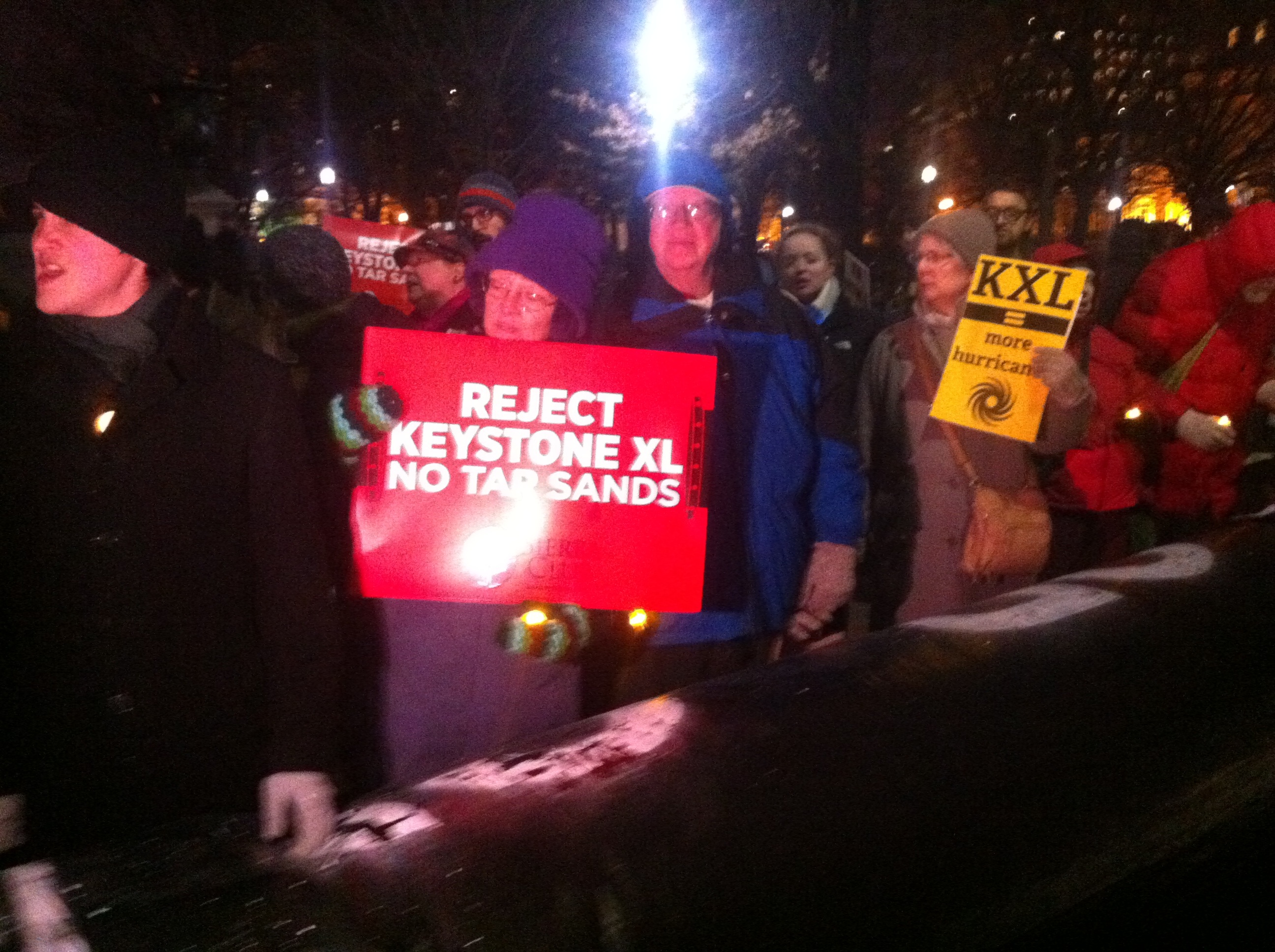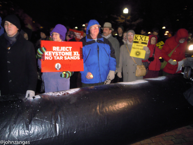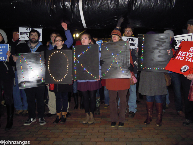 John Kenney, Organizer with Chesapeake Climate Action Network said, “Everyone thought two years ago Keystone XL was a done deal, but it still hasn’t been built.” He also remains positive that the President will not approve it. “I’m pretty optimistic. There were quite a few people here on a cold night.”