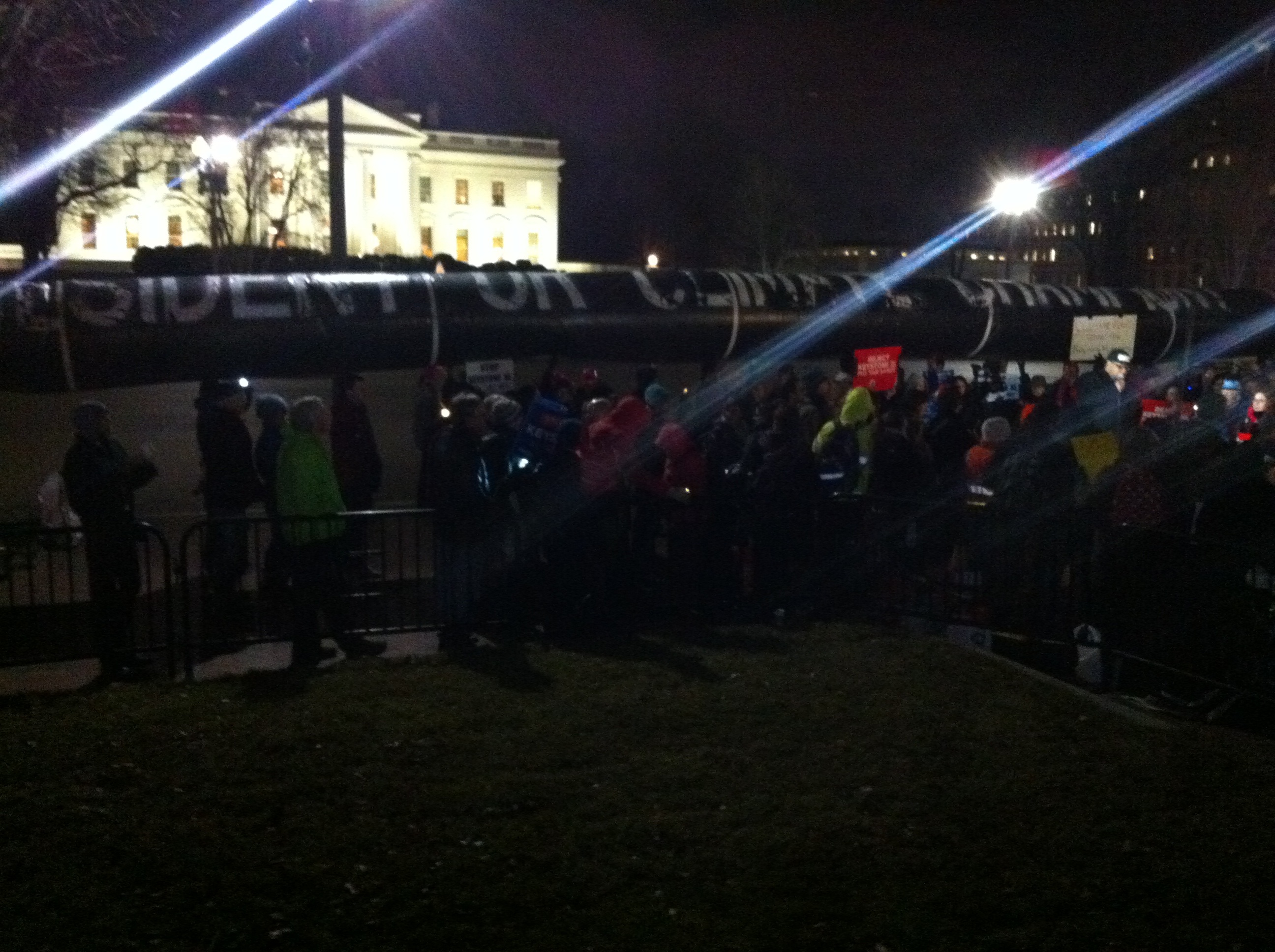 Environmentalists rallied at the White House Monday night with a giant faux pipeline, intensifying efforts to stop the Keystone XL pipeline just days after the State Department published its Final Environmental Impact Statement (FEIS). It was one of more than 280 actions coordinated across the country to stop the 2,000-mile pipeline from being built from Canada through five states to the Gulf.