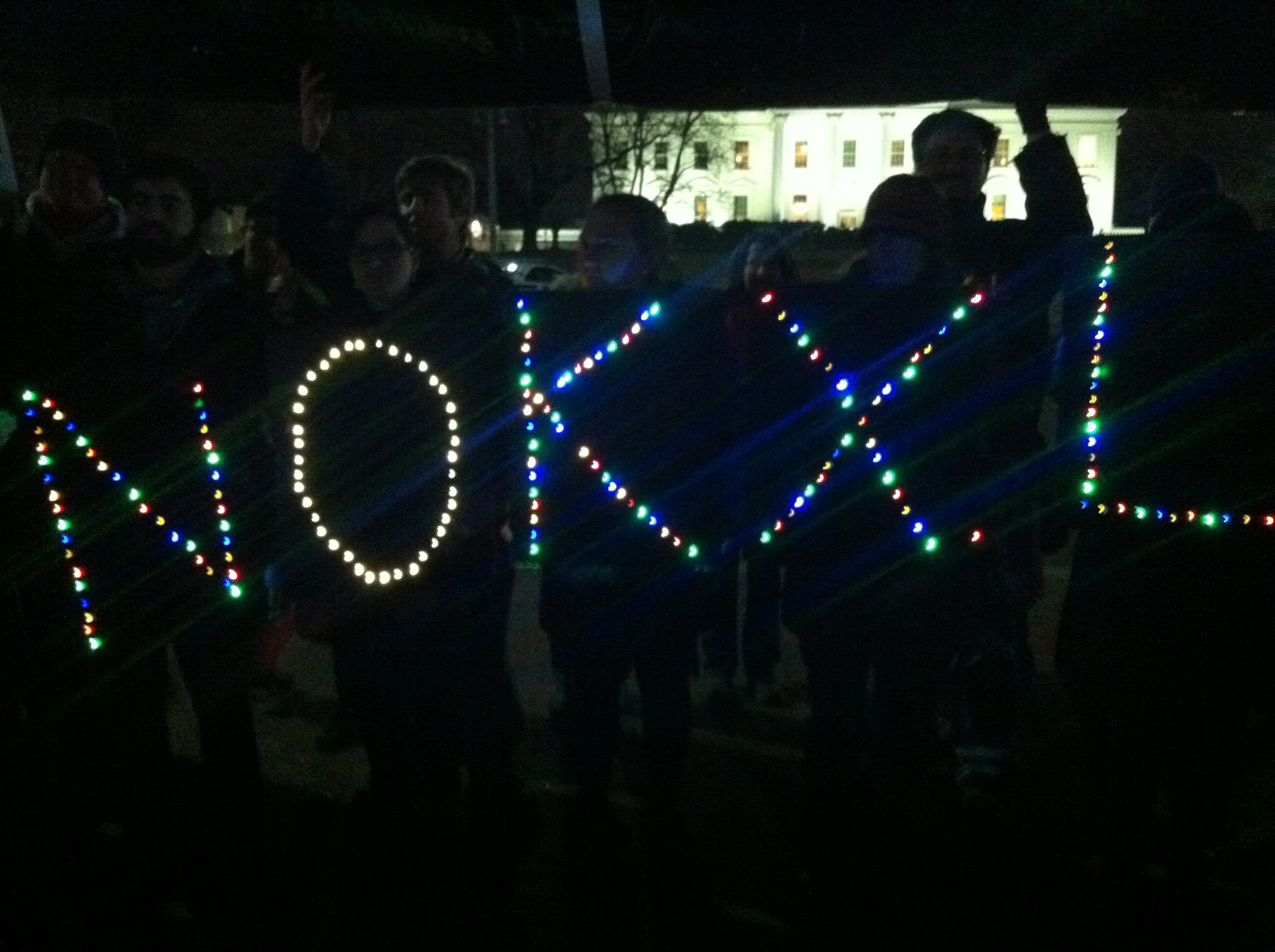 Cowley fired up the crowd in spite of the cold while other activists held a giant faux pipeline inflated with air. Behind her the Detroit Light Brigade held up illuminated letters spelling “NOKXL.”