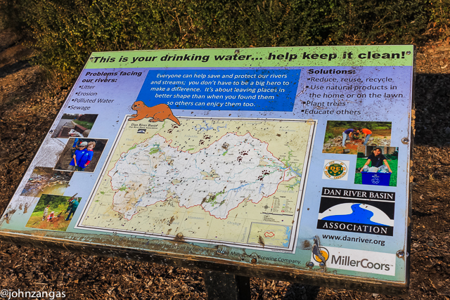 By the banks of the Dan River near Eden, NC, there is a sign that says, “This is your drinking water… help keep it clean!”