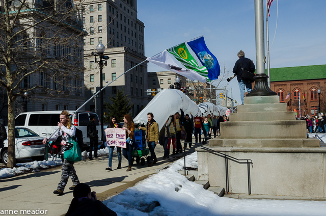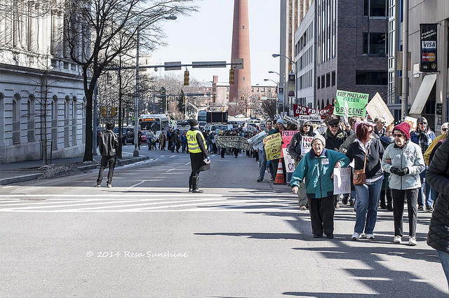 “This is where Maryland makes its climate change stand,” said state representative Heather Mizeur to a crowd at War Memorial Plaza in Baltimore.