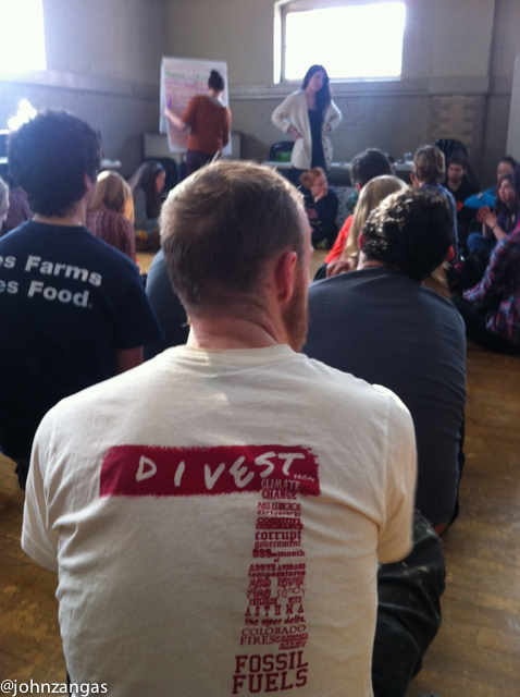 Broader strategies to protect the environment were discussed at Saturday afternoon meetings, including divestment campaigns.