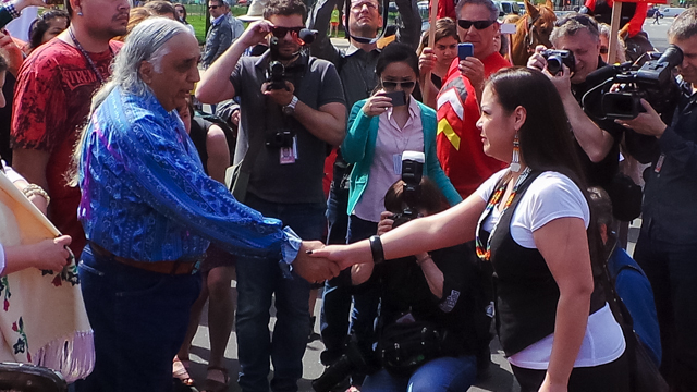Chief John Spotted Tail of the Dakota tribe believes there is no second chance if the pipeline goes through tribal territory. “Pipelines break,” he said. “I know a lot of the ranchers, and it’s good to see they’re all standing up for a cause.”