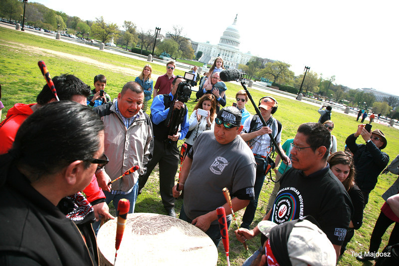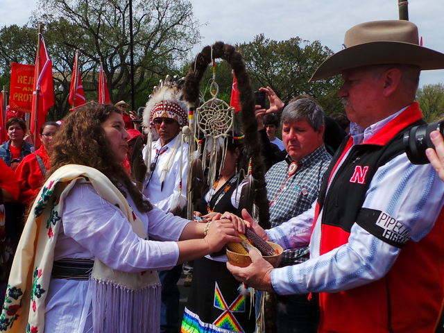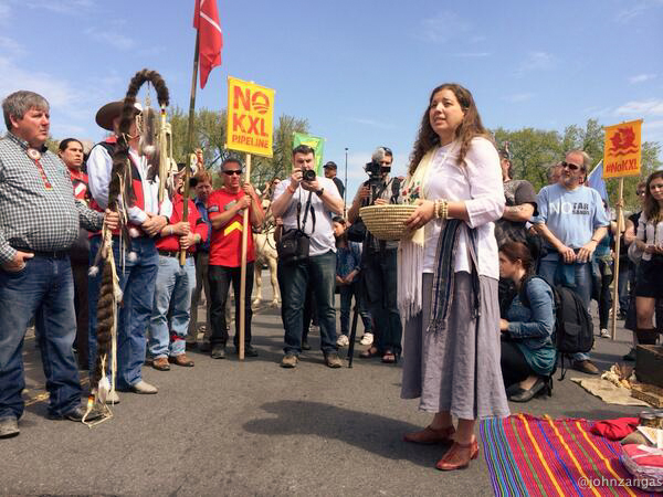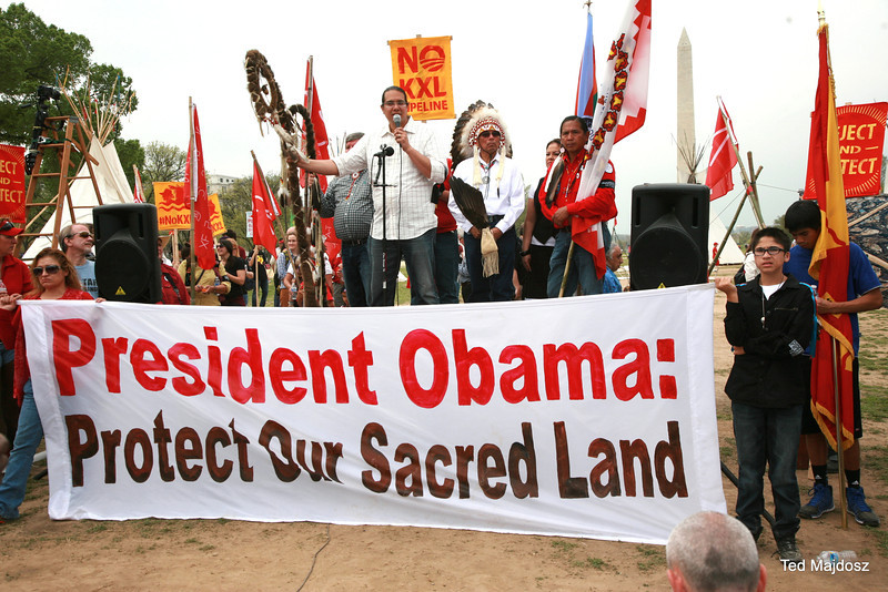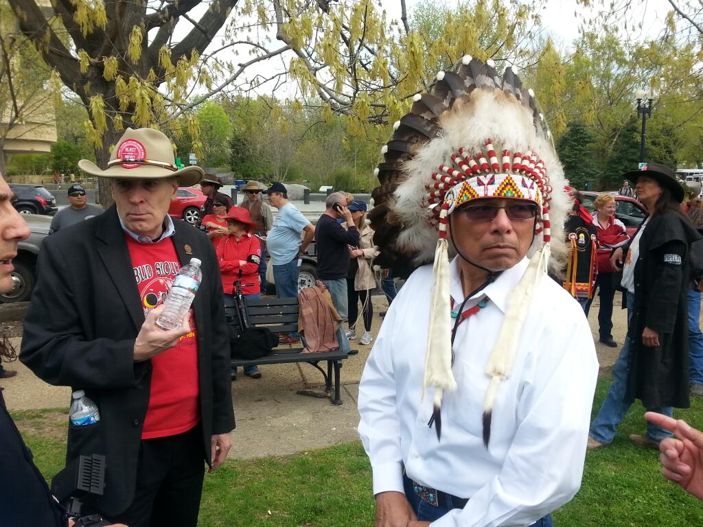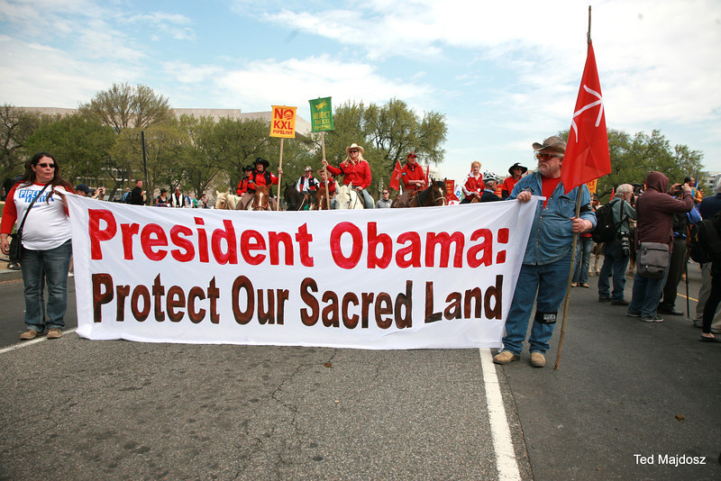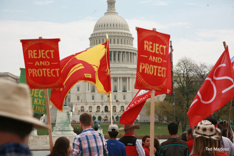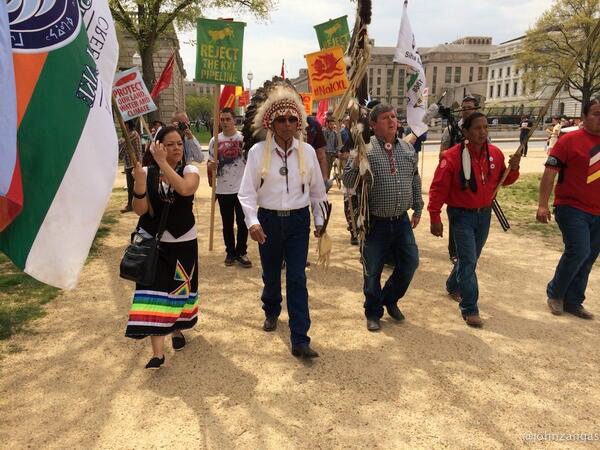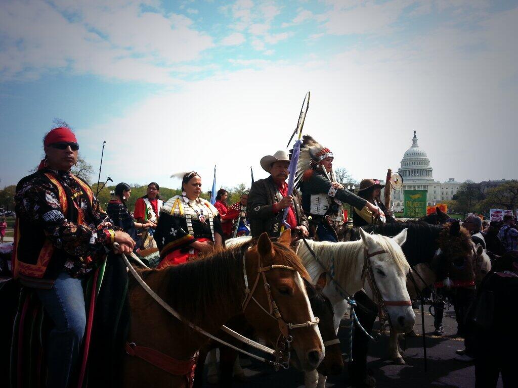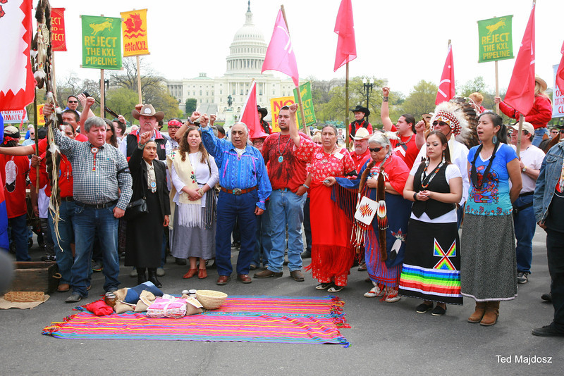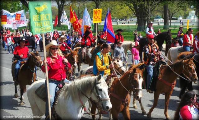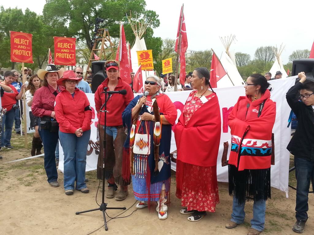 With prayer, songs and burning sage, Native Americans dressed in full tribal regalia along with ranchers and farmers who had traveled to Washington from the U.S. “Heartland” officially kicked off the six-day protest against the Keystone XL pipeline.