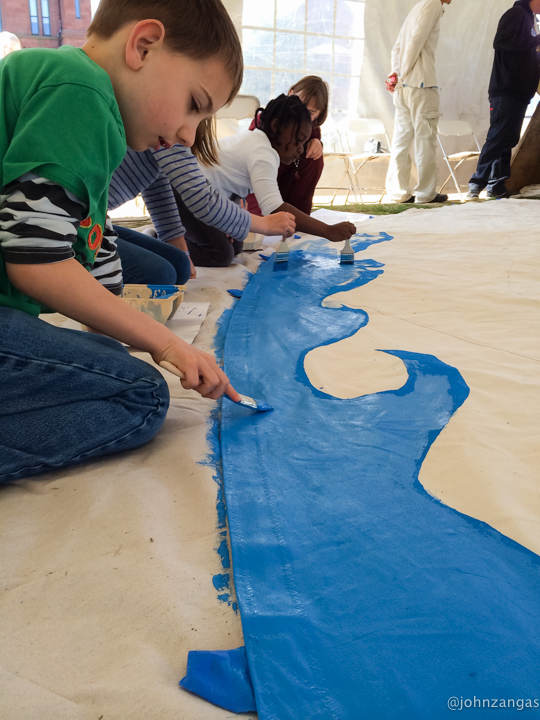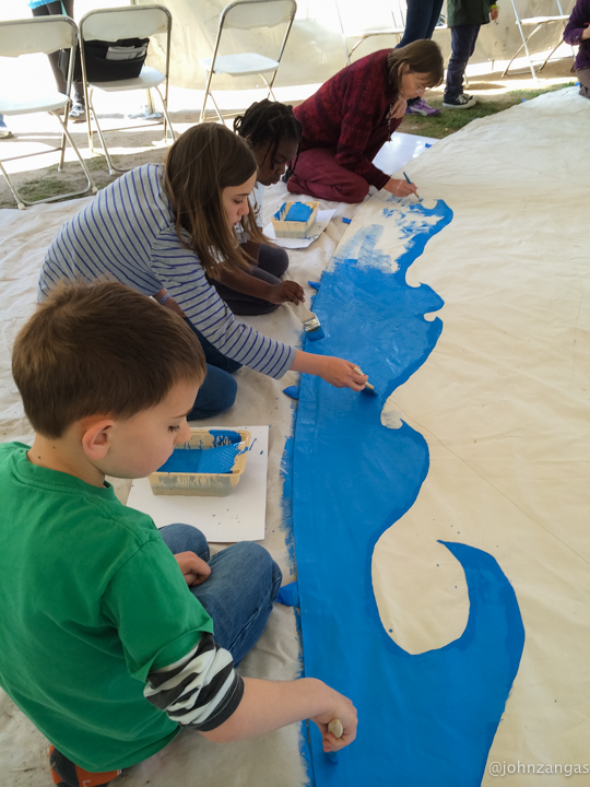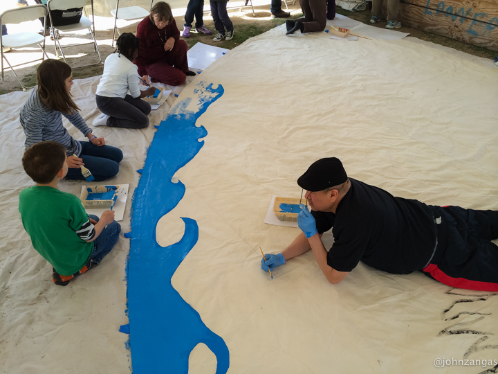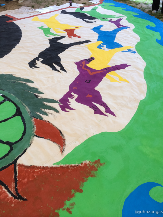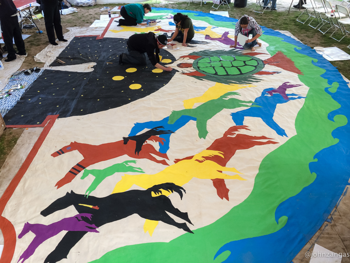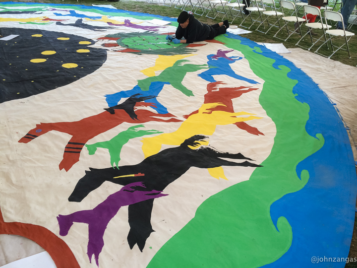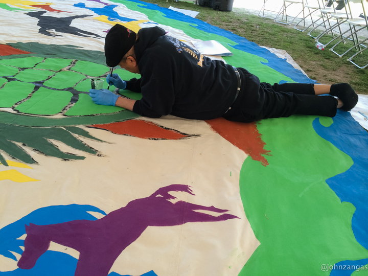 As many as fifty volunteers, including children as young as five, helped Tamayo paint the images he designed and laid out.