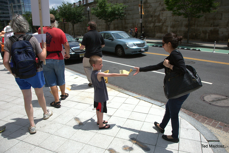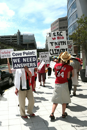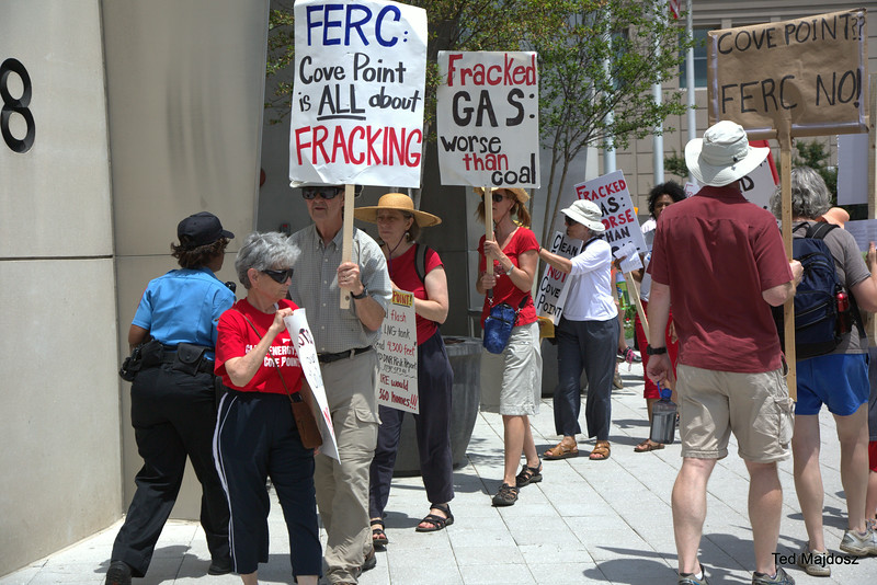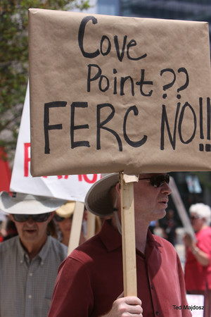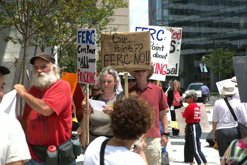 Protestors chanted, “Hey, FERC, yes you can, stop this dirty fracked gas plan!” and carried signs which said, “The FERC Rubberstamp Hurts Communities” and “Cove Point is All About Fracking!” They came from areas which would be affected by the approval of the conversion of Cove Point LNG into an export terminal. On Tuesday, Calvert County, Maryland residents picketed and expressed fears about their safety living in close proximity to the energy intensive and volatile process of supercooling methane gas. On Wednesday, people from Frederick County registered their anger with FERC over approving a highly polluting compressor station in Myersville which would help transport gas to Cove Point.