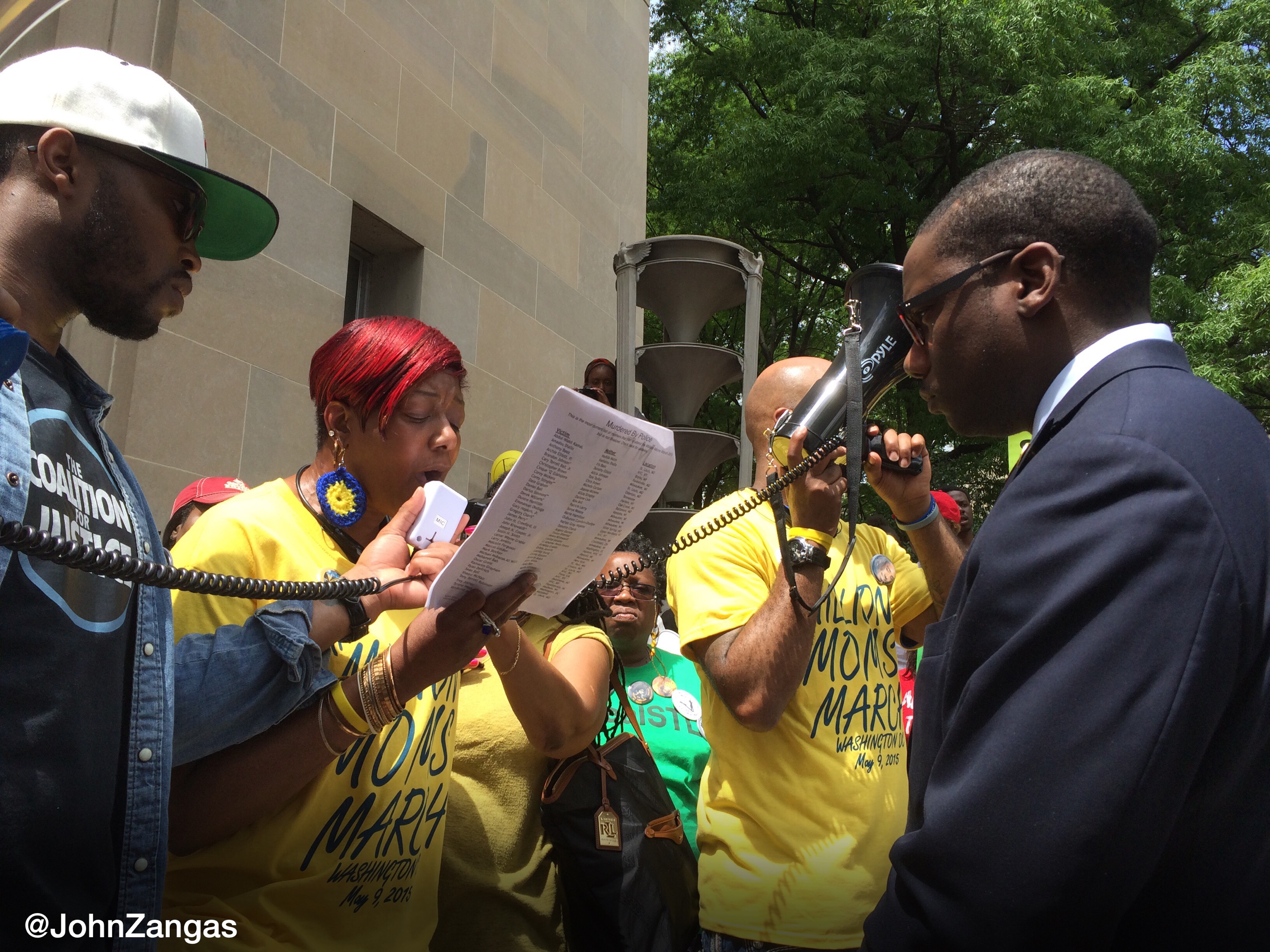 After the Mother’s procession reached the Department of Justice, Ms. Hamilton gave the mother’s demands to Kevin Lewis, Department of Justice Press Secretary, to deliver to Attorney General Loretta Lynch on behalf of the Mothers. She read each demand as Lewis looked on quietly.