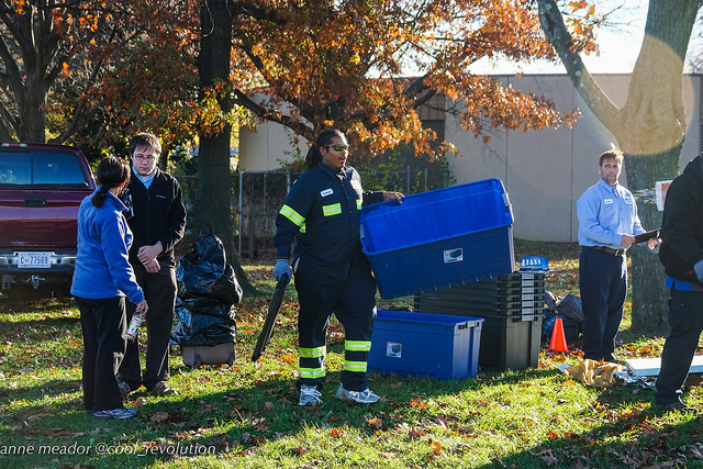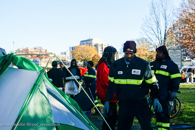 Notices of “infraction” were pinned to the few remaining tents late Friday afternoon, and even to trees where tents had been. Workers pulled belongings out of tents and threw them into trucks. The notice cited District codes which prohibit tents in public places and the occupancy of public space without a public permit. It was issued by the Department of Transportation and dated November 20 at 2pm, the time the eviction began.