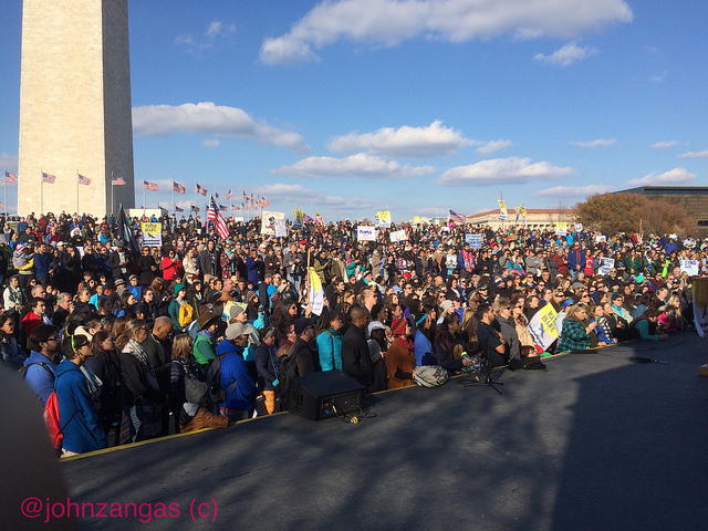 On Friday, the U.S. Army Corps of Engineers sent a letter to the Standing Rock Sioux saying that it would eject all protesters north of the Cannonball River on December 5. At the march’s destination at the Washington Monument, Last Real Indians founder Chase Alone Iron Eyes addressed the crowd regarding ACE’s letter.