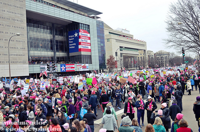 Washington, DC–Hundreds of thousands marched Saturday, January 21 from the Capitol building to the White House in what will be recorded as the nation’s largest demonstration for women’s reproductive rights, equality, and economic parity.
