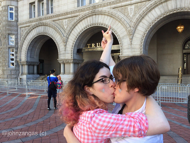 Washington, DC–The LGBTQ community held a dance party and kiss-in in front of Trump International Hotel, saying they were not going to tolerate its bigotry, racism and oppression of minority groups. They had choice words for the Trump Administration, calling several cabinet members out on their record and conduct towards minorities.