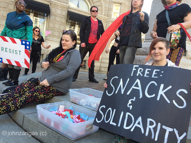 “LGBTQ rights are human rights, and right now we have an administration that believes LGBTQ people do not deserve equal rights,” said Kate Perino, an organizer with the Socialist Snack Club. The President’s choice of Mike Pence as his Vice President, former Governor of Indiana, who signed into state law the Religious Freedom Restoration Act, is seen as a threat to LGBTQ rights, according to Perino.