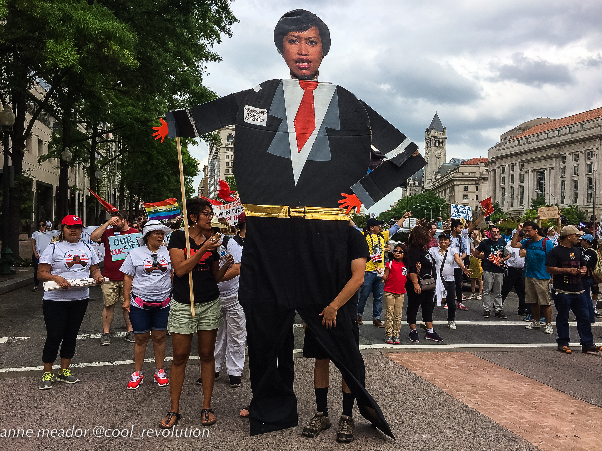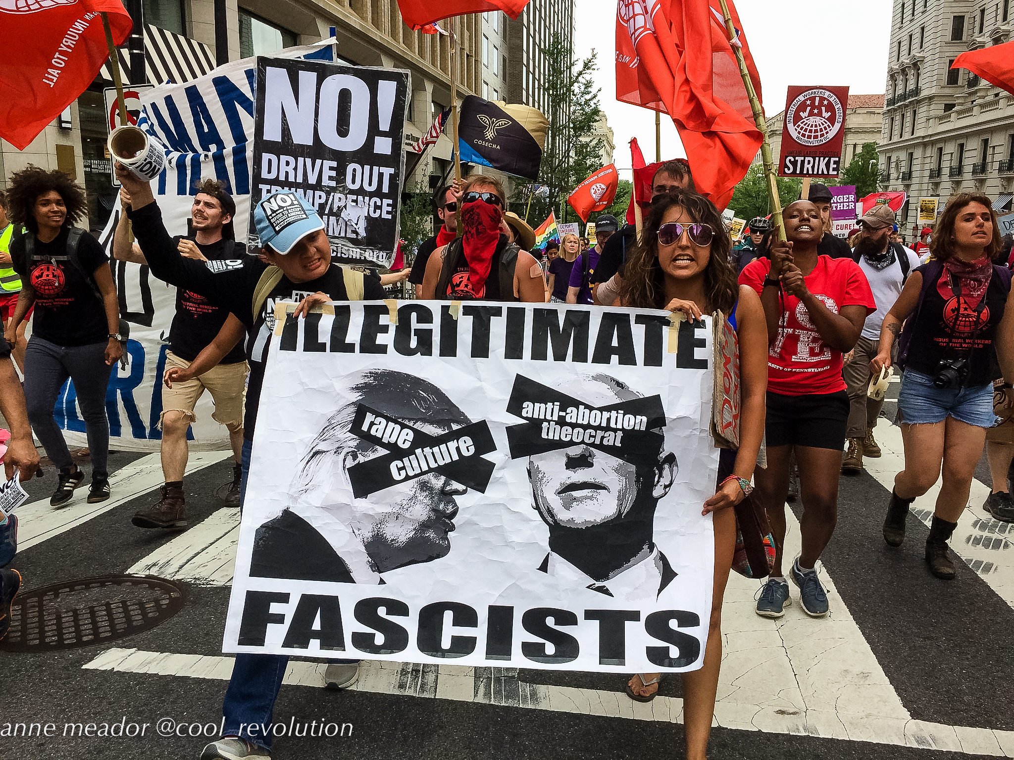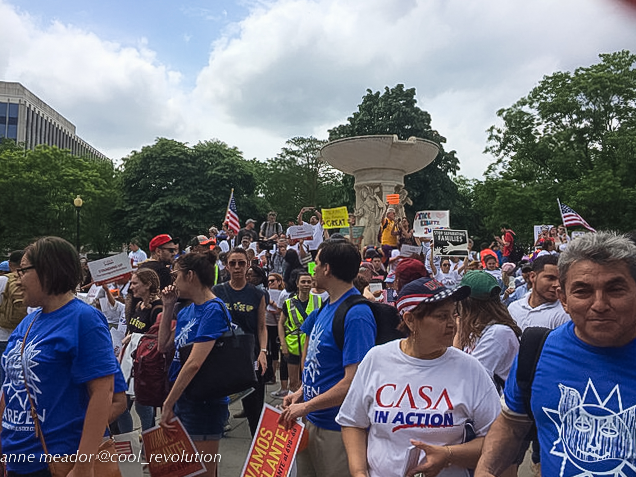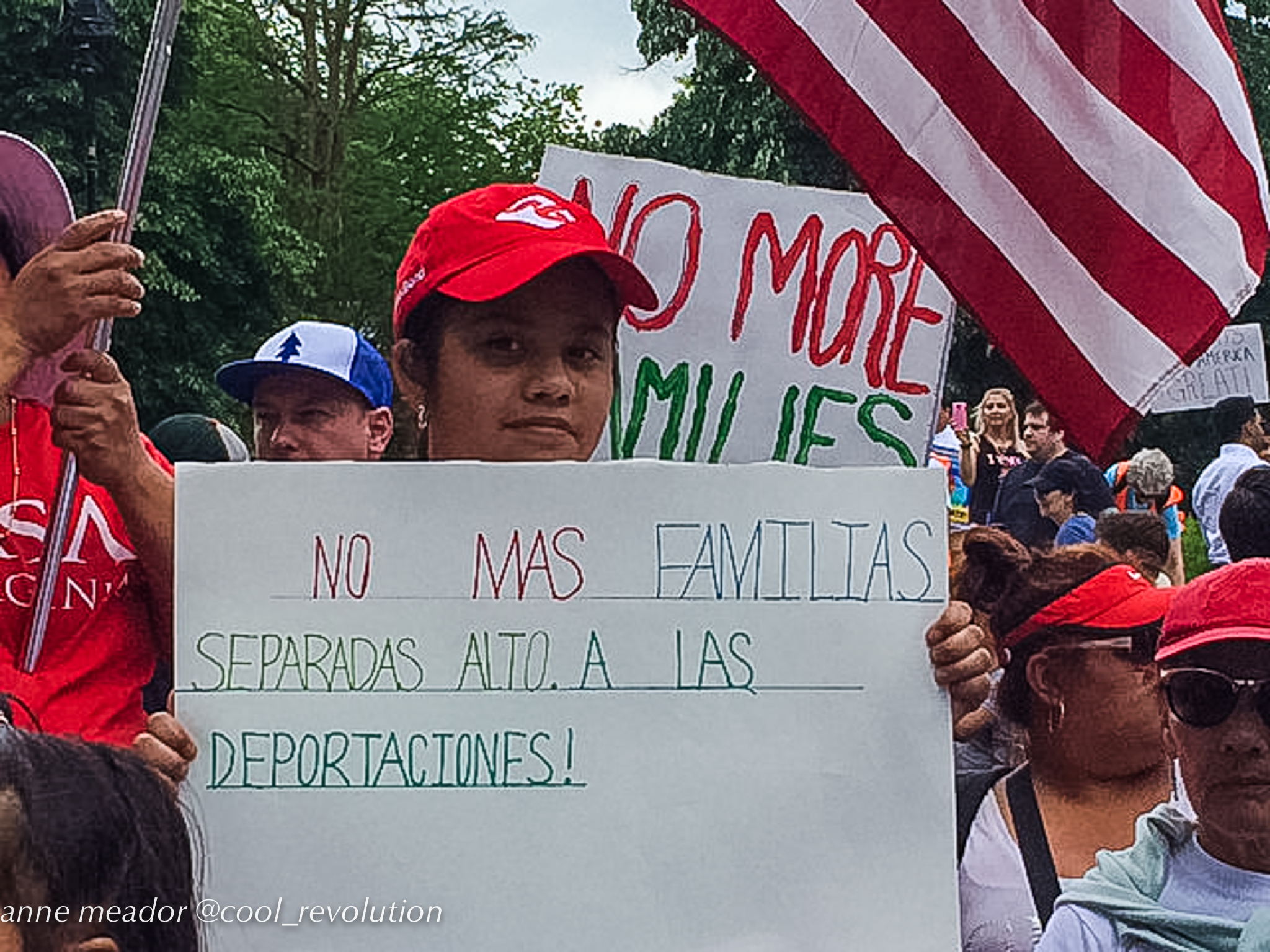 Crowds filled Dupont Circle, Malcolm X Park, Freedom Plaza, and Courthouse in Arlington, then converged into marches to the White House. American flags mingled with Mexican flags and bright red socialist flags. Many of the large number of Hispanic participants were immigrants from Mexico and Central American countries, and, in spite of risks, even undocumented immigrants were present and vocal.