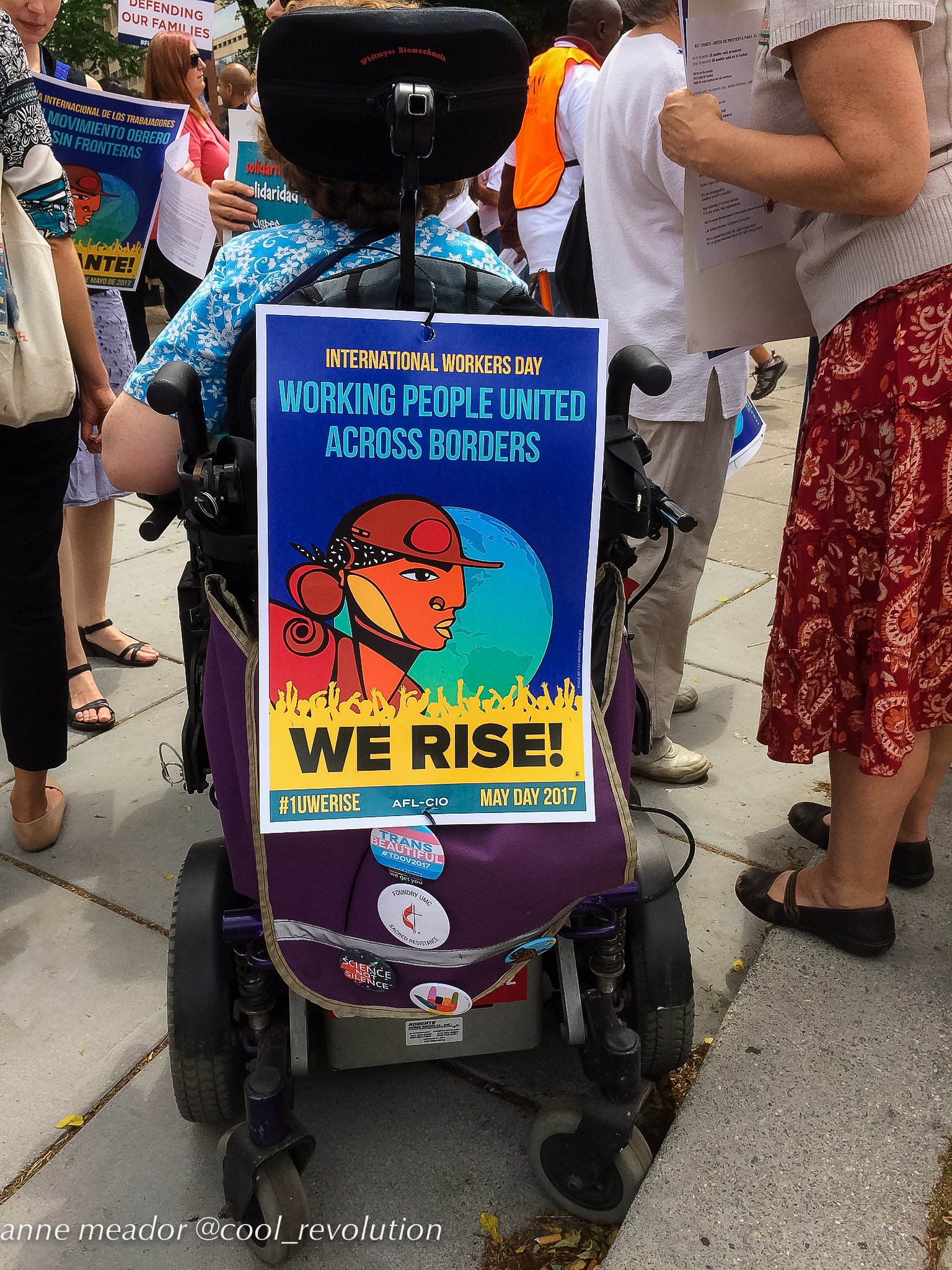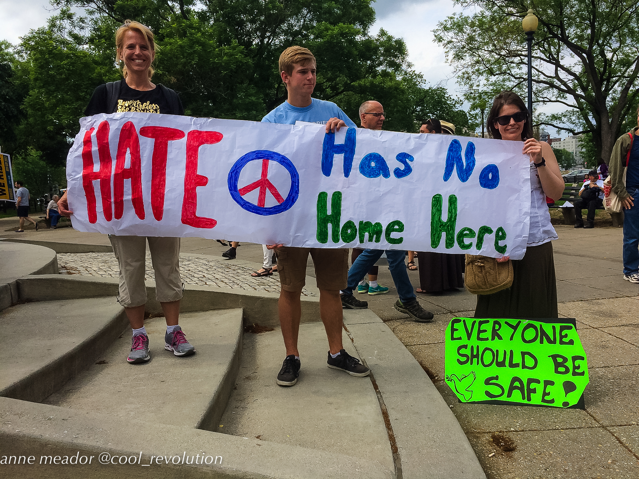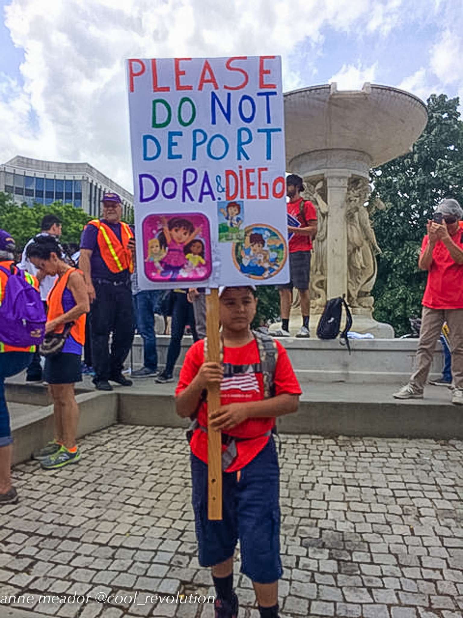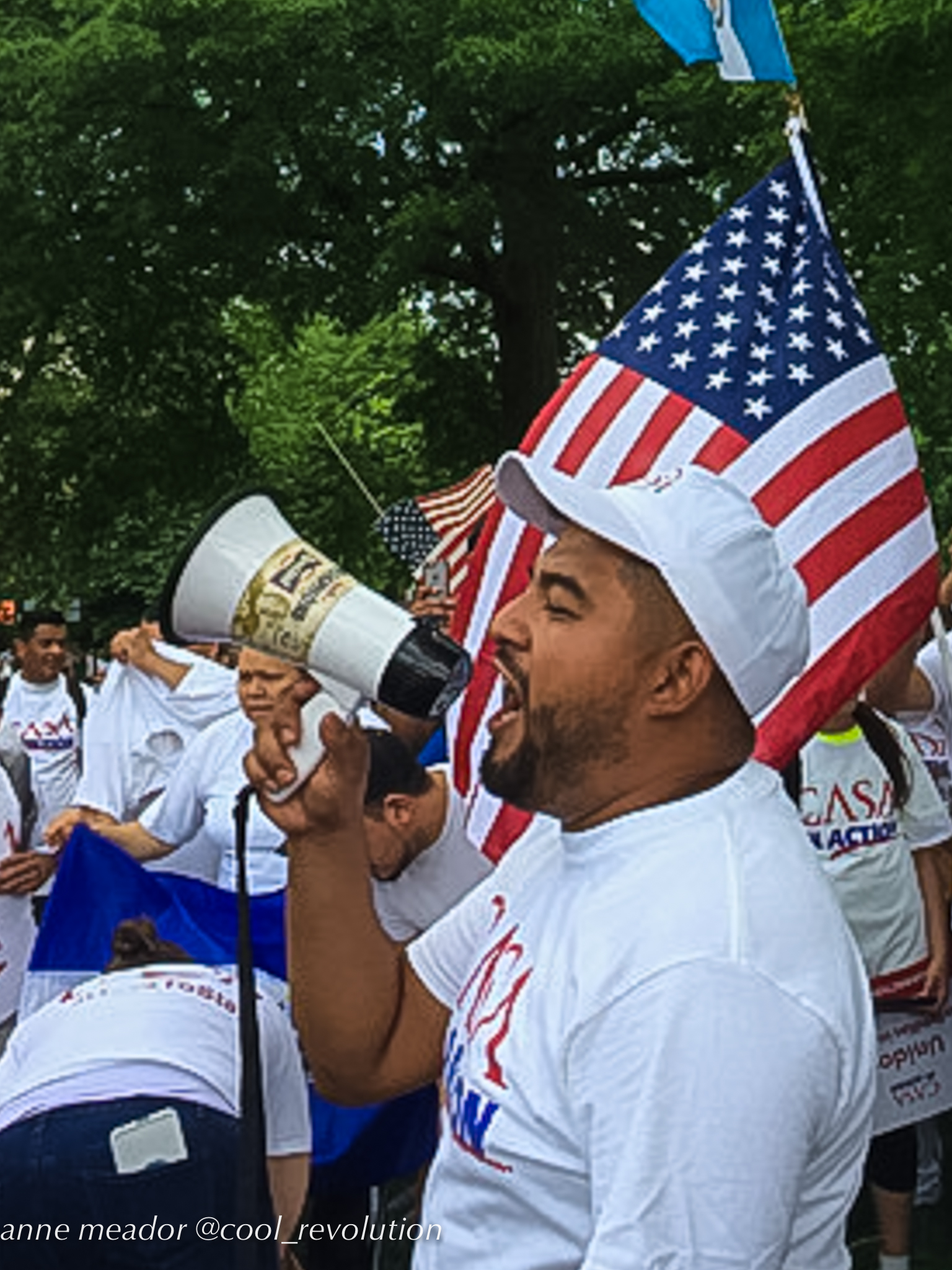 Crowds filled Dupont Circle, Malcolm X Park, Freedom Plaza, and Courthouse in Arlington, then converged into marches to the White House. American flags mingled with Mexican flags and bright red socialist flags. Many of the large number of Hispanic participants were immigrants from Mexico and Central American countries, and, in spite of risks, even undocumented immigrants were present and vocal.