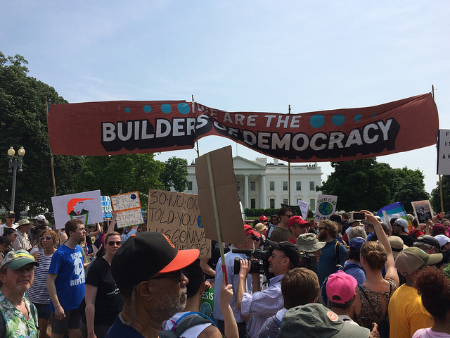 Thousands of people marched in the streets of Washington, DC to celebrate May Day, the holiday often known as International Workers’ Day, with defiant calls for a living wage, benefits, and safe working conditions. In light of President Trump’s assault on immigrants and refugees, the rallies and marches also became protests against refugee bans, deportations and raids on immigrant communities.