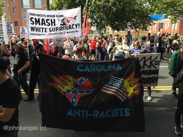 White supremacists have descended on Charlottesville since City Council voted to take down a statue of General Lee in an effort to remove Southern Heritage symbols of the Civil War. On Friday night, Neo-Nazis carried torches through the Grounds of the University of Virginia, chanting Nazi Germany slogan “Blood and Soil.” They attacked, beat and maced anti-racist protestors. Conflict also broke out when anti-fascists confronted White Nationalists at the Lee statue.
