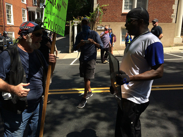 Charlottesville, Va. — Anti-fascist and anti-racist counterprotestors confronted a planned white nationalist gathering in downtown Charlottesville on Saturday. Multiple angry clashes between groups in the morning resulted in many injuries.