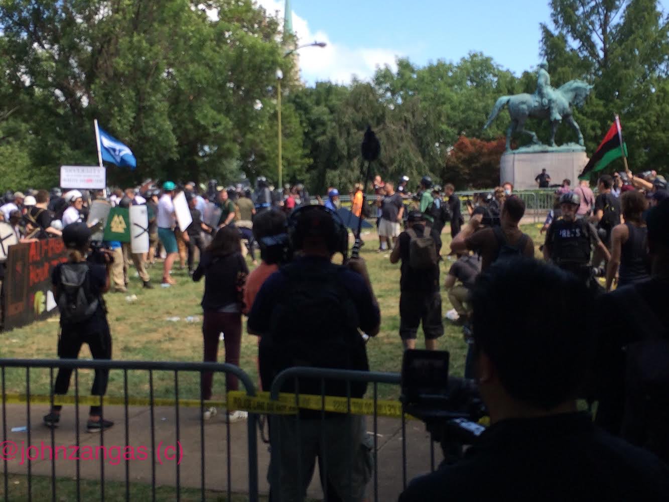 The clashes erupted almost from the start of the permitted protests, which began at 10 a.m. Elements from the KKK, Neo-Nazis and the Alt-Right, were met at every turn by about 1,000 counterprotesters.