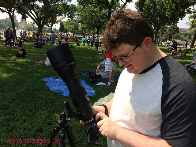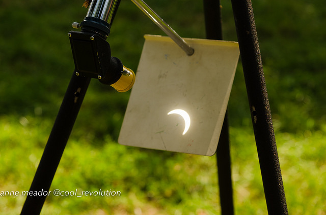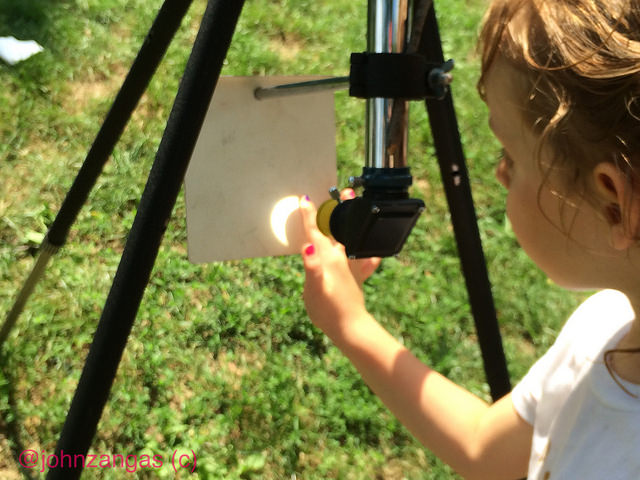 One man named Peter brought a telescope his mother bought from Montgomery Wards years ago and gave him when he was a kid. He set it up under an elm, aimed it at the heavens, and projected a large image of the eclipse. His daughters could barely keep their hands off it. Two new science enthusiasts were born.