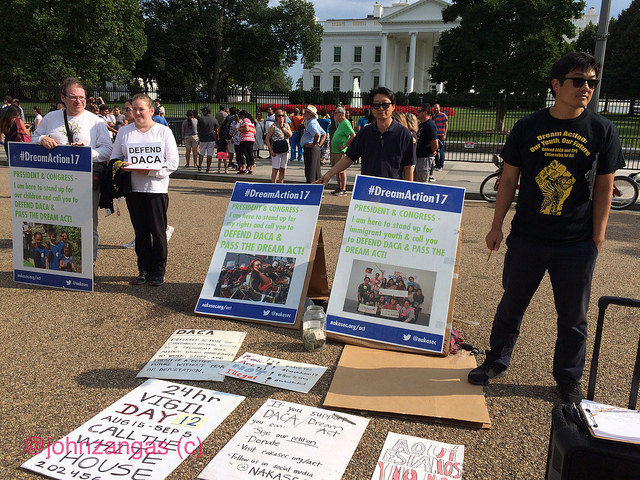 An Obama Executive Order of 2012 gave legal status to nearly 800,000 children of undocumented immigrant families. Those children, known as “Dreamers,” their advocates and supporters have been circulating a petition and maintaining a vigil outside the White House since August 20 to keep them from being deported.