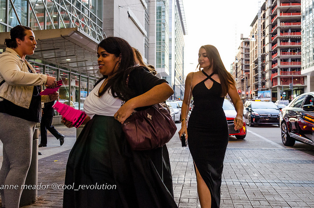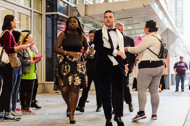 Those attending the gala dinner, dressed to the nines, were escorted by security into the building. Some quickly swept by activists trying to hand them flyers, while others were receptive to learning about why they were protesting.