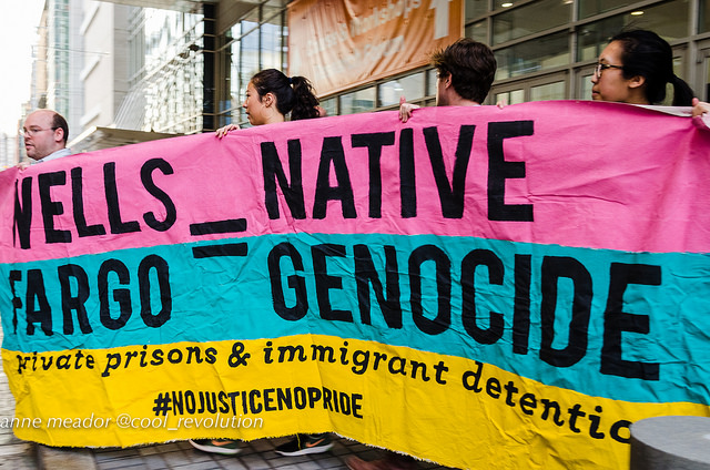 Wells Fargo invests in private prisons, finances pipelines which adversely affect Native Americans and engages in predatory lending practices. When HRC invites Wells Fargo to sponsor its premier event, it allows it to do “PR damage control” at the expense of the LGBTQIA+ movement, according to Drew Ambrogi of NJNP.