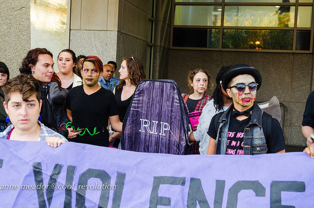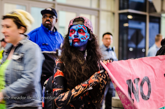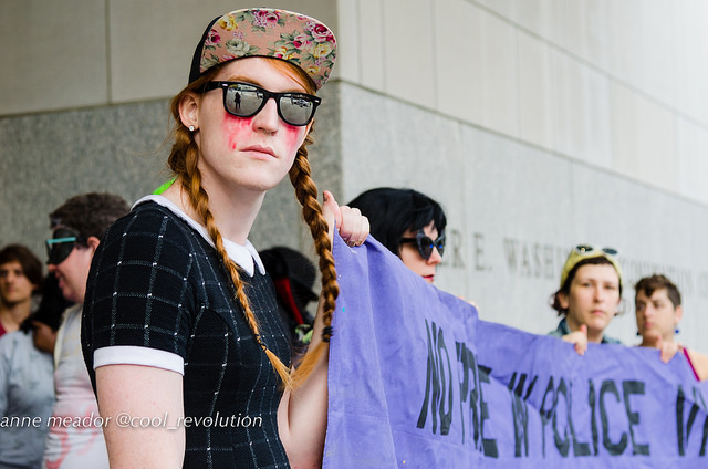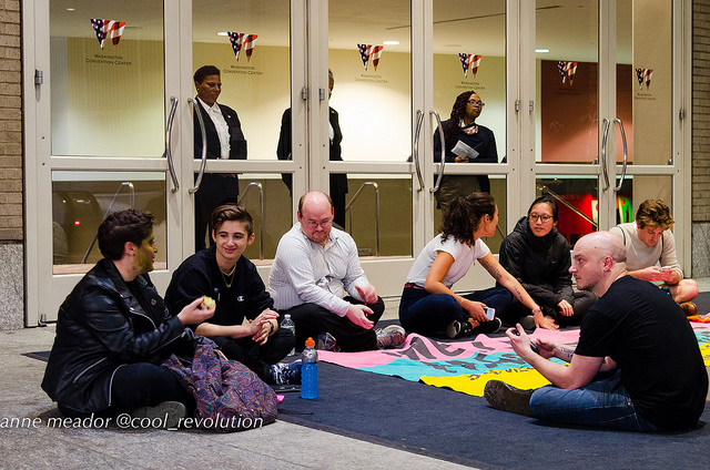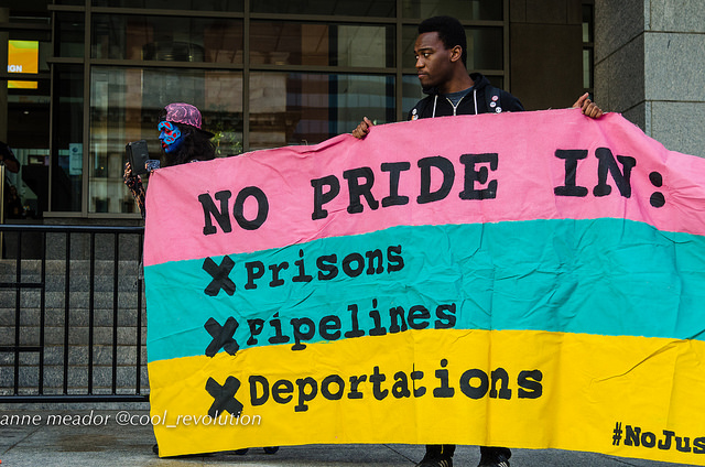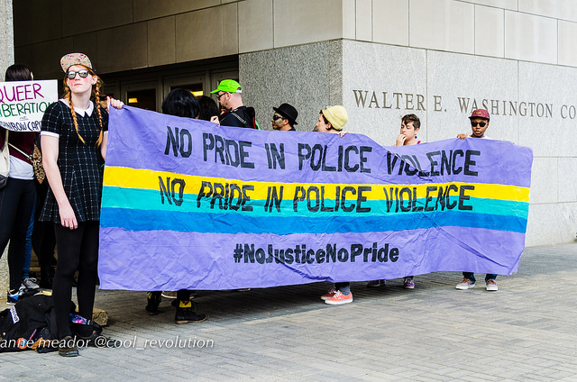 “In June, at the Pride Parade, we targeted Capital Pride’s willingness to sell our communities out to harmful corporations. Today, we’re targeting HRC’s willingness to do the same,” said blockade organizer Emmelia Talarico. “These actions are microcosms in a broader struggle. For decades, the LGBT movement has cast aside the most marginalized in pursuit of ‘equality’ for the most privileged members of our communities.”