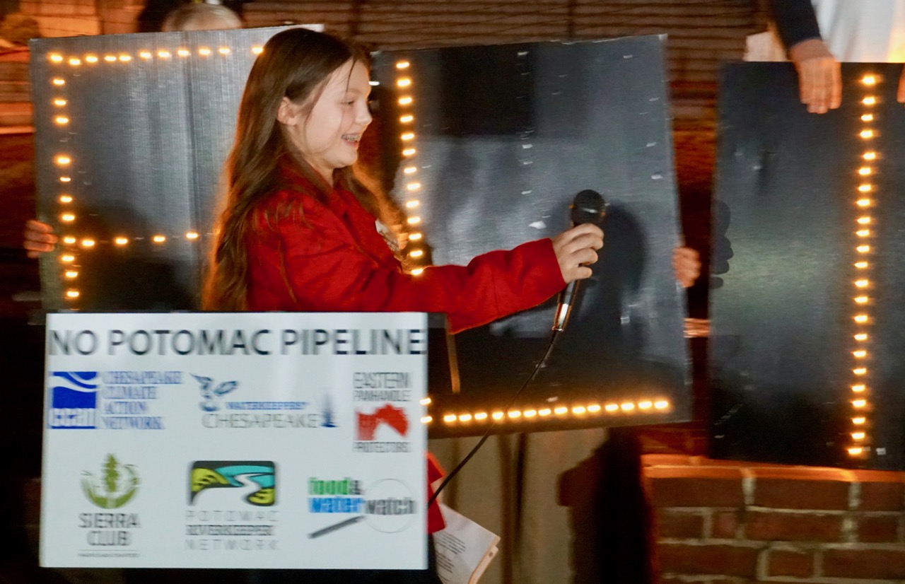 Ivy Hale, an 11-year-old environmentalist, wants to conserve the water quality of the Potomac and the beauty along the C&O Canal. “I am worried about a lot of things, and this pipeline is one of them,” she said. She asked the governor think about the people and animals that would be affected by the project.