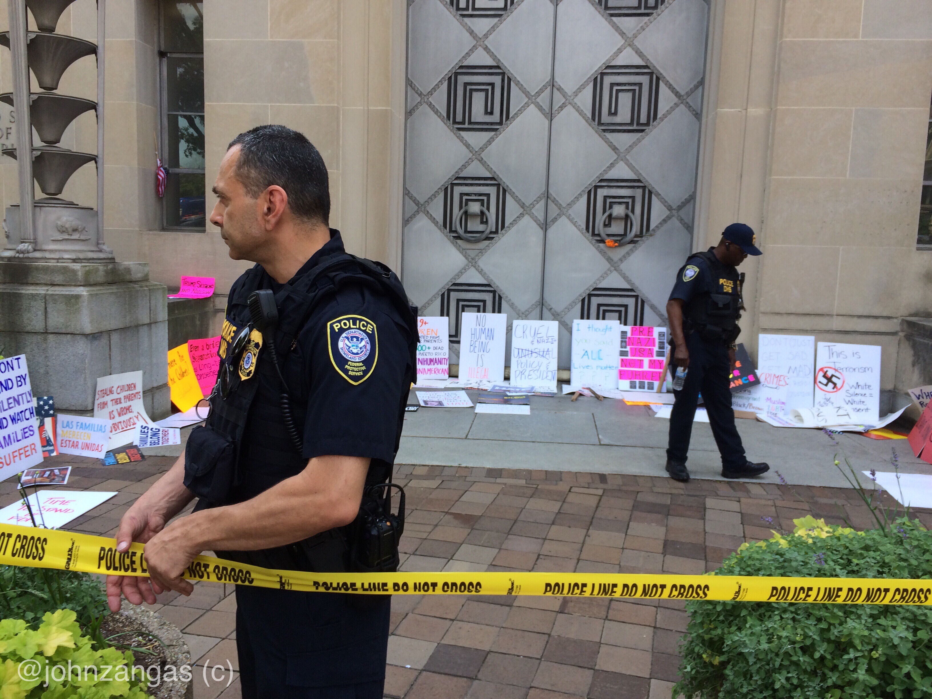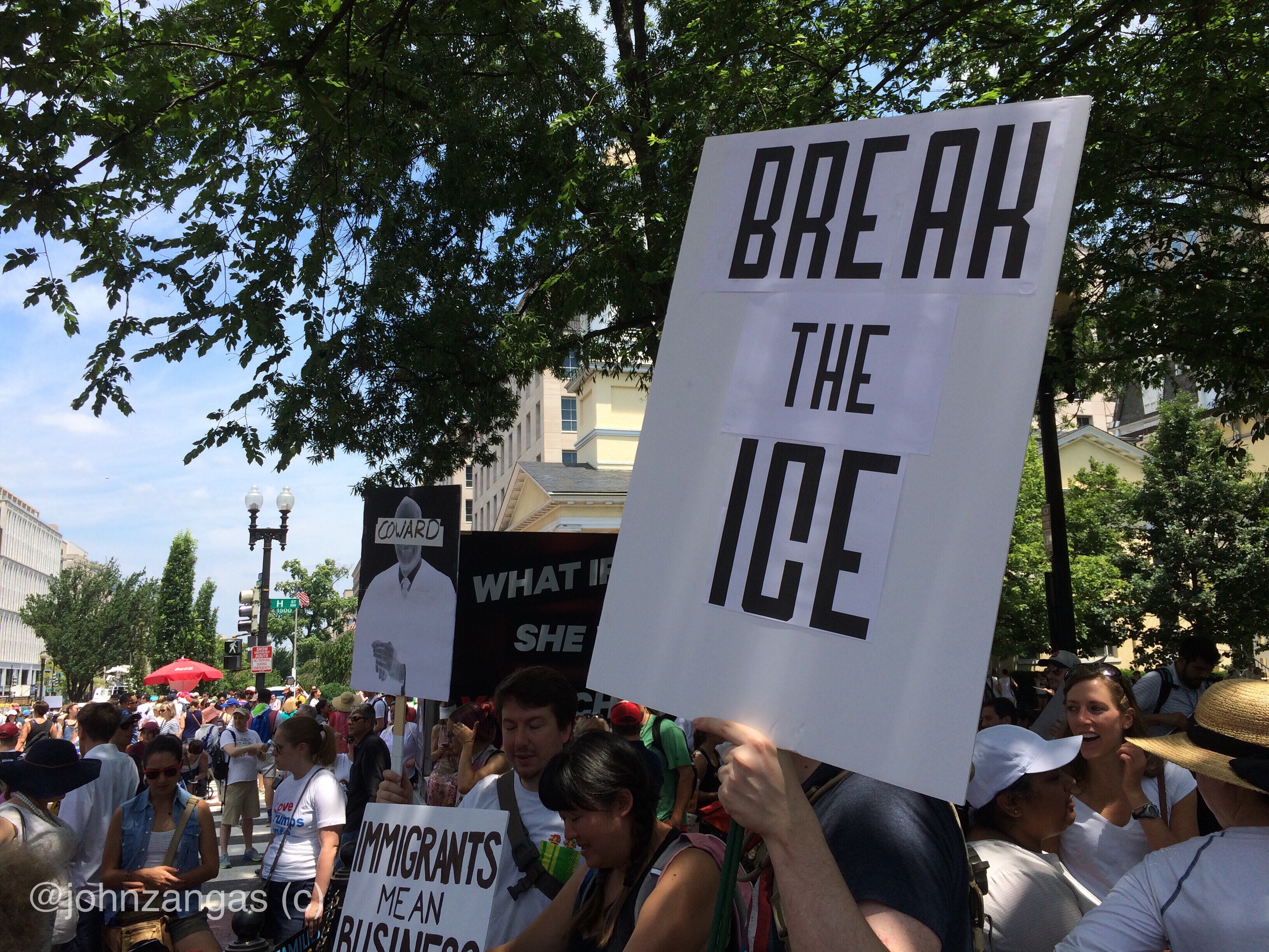 Lafayette Square filled with protesters despite early day temperatures reaching into the mid-90s. As speakers finished, thousands left Lafayette Square, march past the White House chanting “Shame!” and “This is what democracy looks like!”