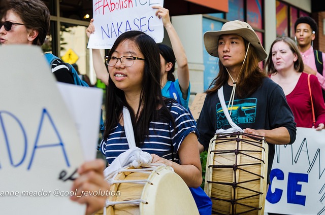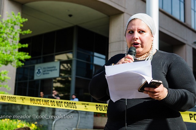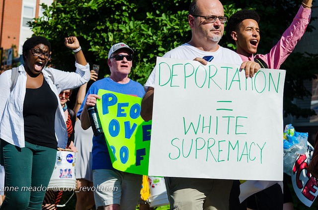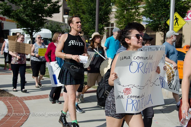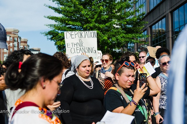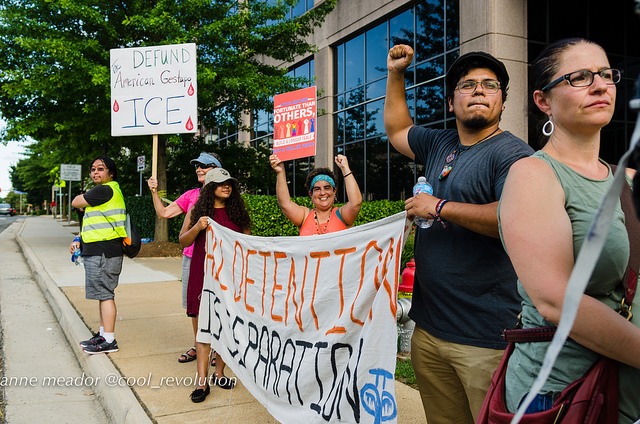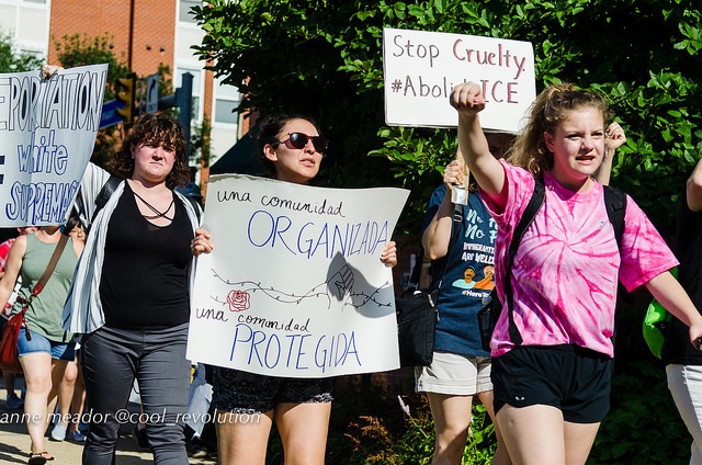 The protest was organized by La ColectiVa, Justice for Muslims Collective, SURJ Northern Virginia, NAKASEC, No Justice No Pride, Sanctuary DMV and Metro D.C. Democratic Socialists of America.