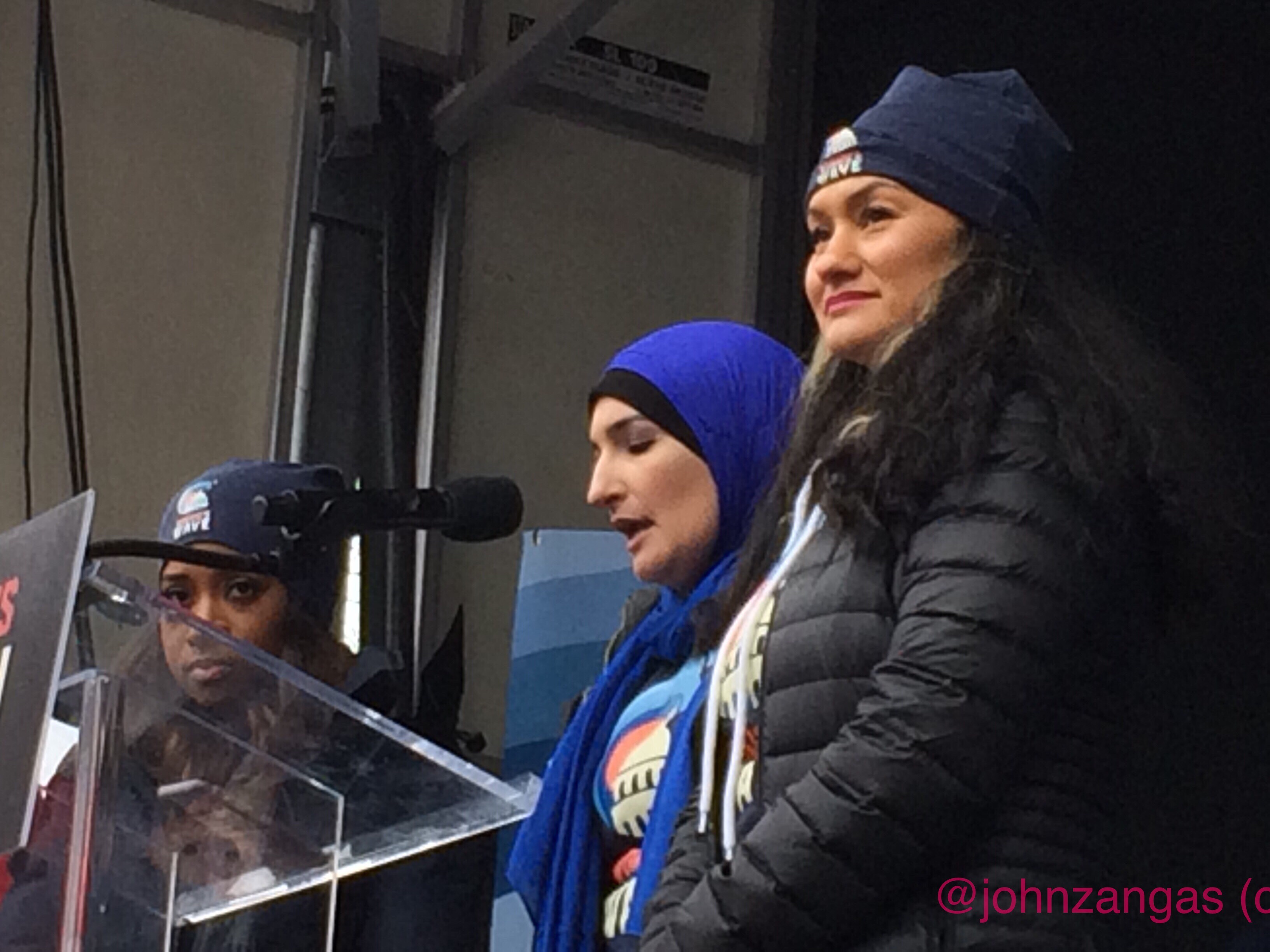 Co-founder Linda Sarsour also spoke. “We come to this movement not because we choose to come here. It is because we have to be here.” Sarsour outlined how communities and families were under attack by administration policies.