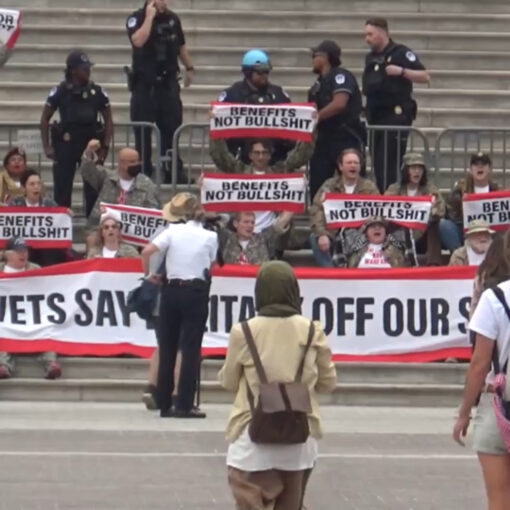 Feature photo by Stewart Acuff: Local opponents to Rockwool and the sewer bond protest in front of the courthouse in Charles Town before the vote.