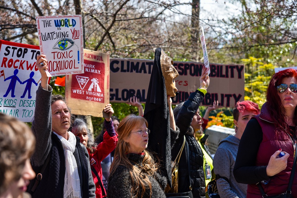 The gathering made sure they could hear them inside. For more than two and a half hours, they beat drums, chanted “No toxic Rockwool!” and sang “We shall not be moved” and the John Denver anthem “Country Roads.”