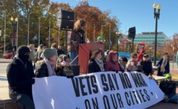 As the Department of Homeland Security wages a war at home against American citizens, immigrants legally seeking citizenship, and migrants seeking refuge, Veterans are asking the question on behalf of everyone. Washington, D.C.— “The Marine Corps ordered the weather today.” The master of ceremonies joked, bracing against a freezing wind […]
